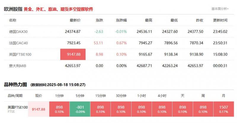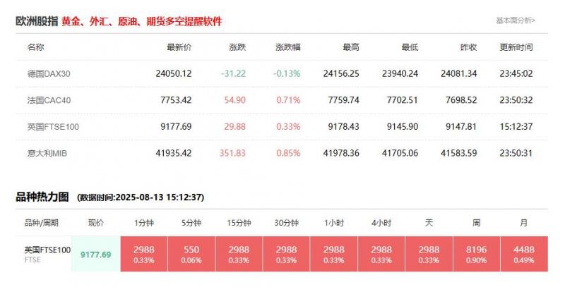 英国富时100指数8月13日(周三)开盘上涨22.92点,涨幅0.25%,报9170.73点;