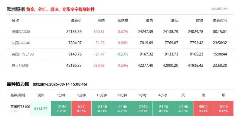 意大利富时MIB指数8月13日(周三)开盘上涨84.58点,涨幅0.20%,报42020.00点。