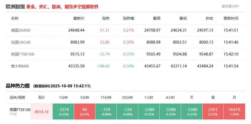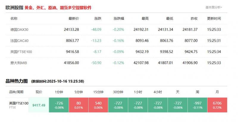 意大利富时MIB指数10月16日(周四)开盘上涨174.10点,涨幅0.42%,报42081.00点。