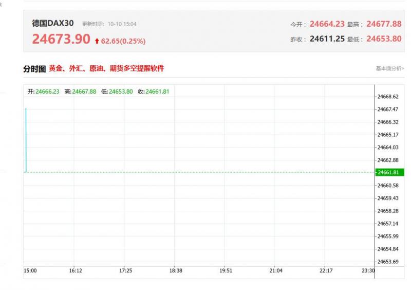德国DAX30指数10月16日(周四)开盘上涨4.04点,涨幅0.02%,报24215.02点;