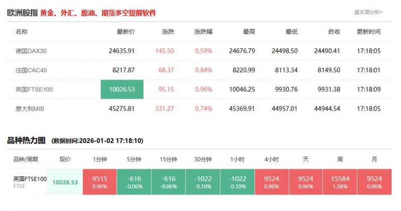英国富时100指数1月2日(周五)开盘下跌1.78点,跌幅0.02%,报9929.60点;