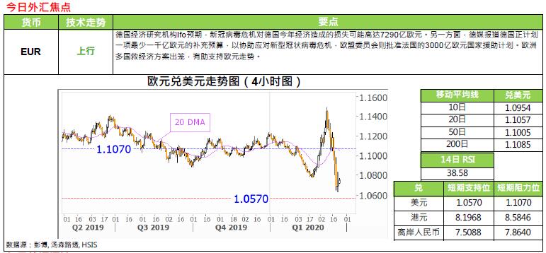 每日汇金市要闻及评论: =607德国经济研究所Ifo估计,若德国经济因新冠病毒疫情而局部停摆两个月,对该国本年的经济损失或介乎2,550-7,290亿欧元,若持续3个月,则有关损失将扩大至3,540-7,290亿欧元,远超过近几十年来德国遭遇过的任何经济危机或天灾。 =607美国联储局推出新一轮纾因