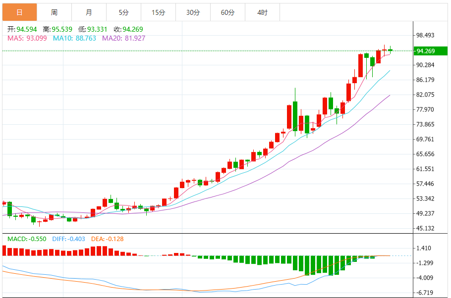 周三(1月21日),现货白银目前位于94.320美元/盎司附近,跌幅为0.23%。 在之前达到超买水平后,由于相对强势指标出现负面信号,白银价格在最后一个交易日下跌,试图获得看涨势头,这可能有助于其恢复并创下新的历史新高,其在A50上方的交易所代表的动态支撑仍在继续,这加强了短期主要看涨趋势的稳定