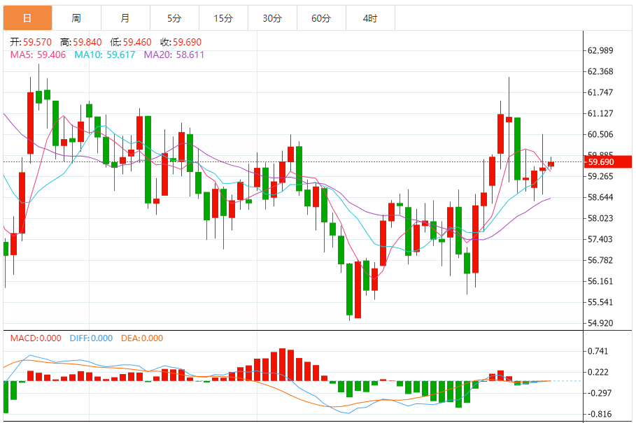 基本消息面 周三美原油小幅走高交投于59.70美元/桶附近,依然处于区间震荡之中,反弹力度有限,主要受到最新经济数据改善的提振,但市场整体情绪依旧偏谨慎。 相关新闻消息 作为全球最大原油进口方的亚洲国家,其国内生产总值和工业生产数据被解读为经济活动正在趋于稳定,这