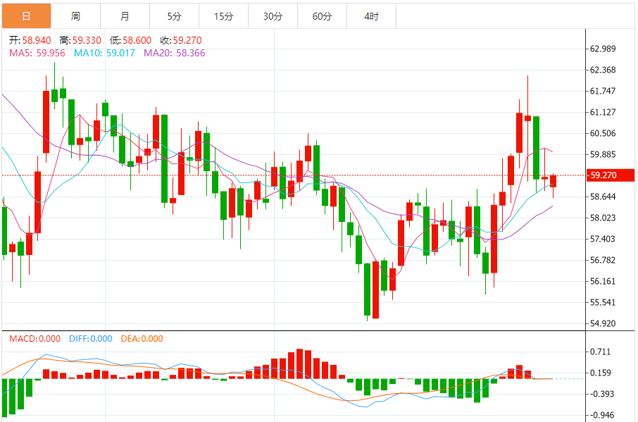 周一(1月19日),美原油价格交投于59.190美元/桶附近,跌幅为0.25%。 得益于A50的支撑,原油价格在最后一个交易日成功地将早期的损失转化为小幅上涨,这提供了看涨的动力,帮助其抹去这些损失,回到积极的区域。 这是在试图减轻相对强度指标的超买状况的情况下出现的,特别是在出现负面
