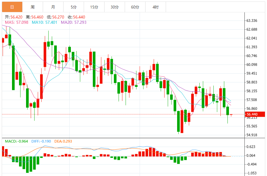 周四(1月8日),美原油价格交投于56.200美元/桶附近,涨幅为0.38%。 原油在最近的盘中交易中以有限的涨幅结算,在卸载相对强度指标上的超卖条件后,除了卸载一些之前的交易,试图建立临时的盘整基矗 有迹象表明看涨势头正在减弱,相对强弱指标上出现了负面重叠信号,伴随着因交易低于A5