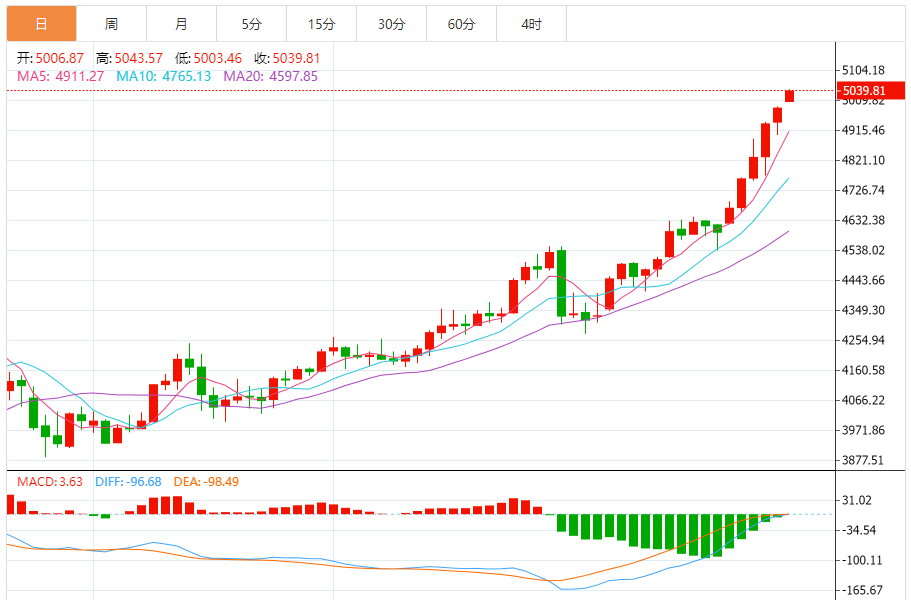基本消息面 现货黄金价格周一(1月26日)延续涨势,历史上首次突破每盎司5000美元关键关口,截止发稿,盘中最高触及5041.60美元,再创历史纪录,涨幅约0.9%。此轮上涨主要受地缘政治风险升温推动,尤其美国与北约在格陵兰问题上的摩擦加剧了市场对金融及地缘格局不确定性的担忧,此外美国上周宣布对