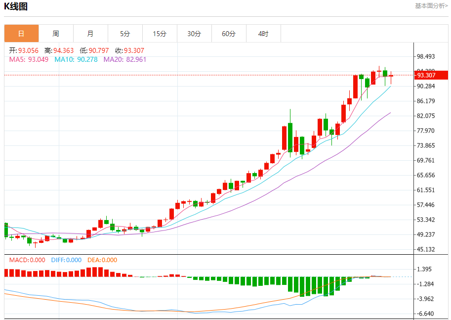 周四盘中,现货白银报93.260,涨幅0.19%。 今日分析:在92.70之上,看涨,目标价位为94.70,然后为95.80。 技术点评:RI技术指标运行趋势复杂,倾向于上升。 支撑位:92.7091.7090.35 阻力位:97.2095.8094.70 (亚汇网编辑:冰凡)