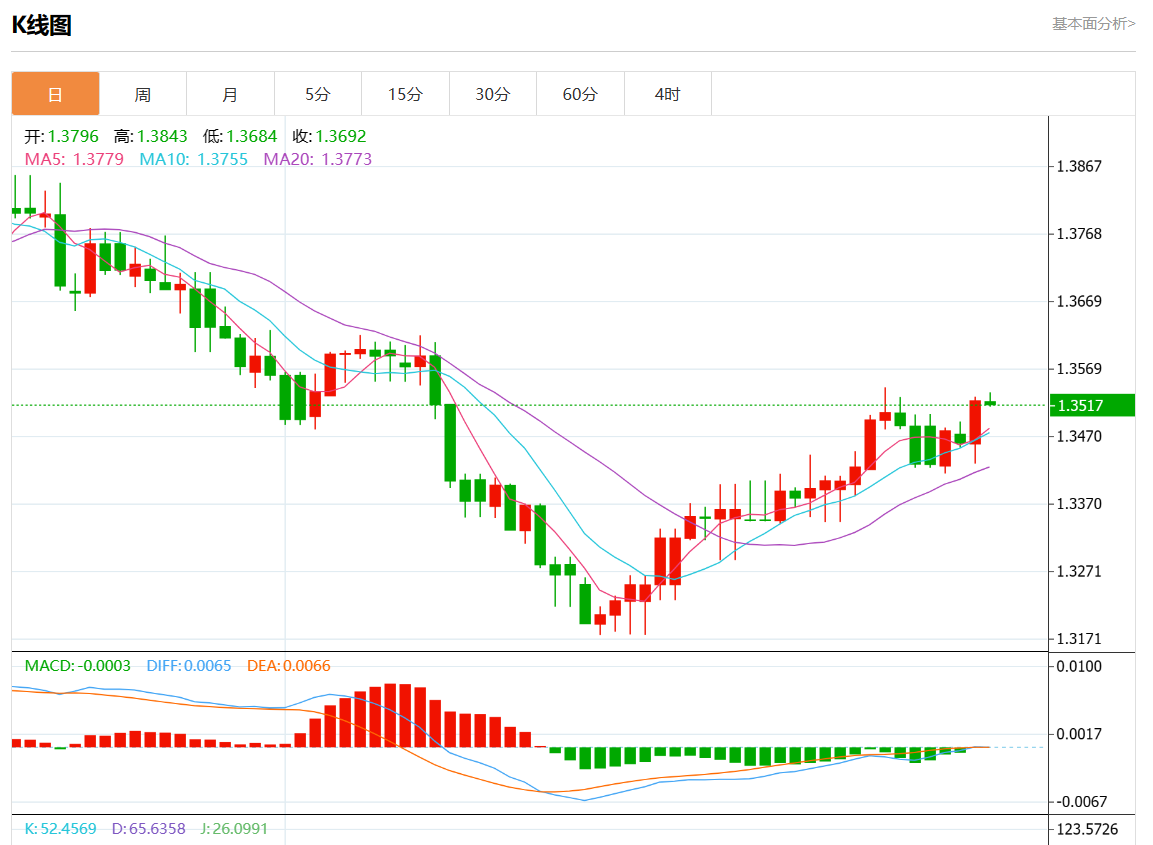 周四盘中,美元/加元报1.3516,跌幅0.04%。 今日分析:在1.3490上方做多头,目标在1.3550和1.3570。 技术点评:RI显示出上行动能。 支撑位:1.35901.35701.3550 阻力位:1.34901.34701.3450 (亚汇网编辑:静香)
