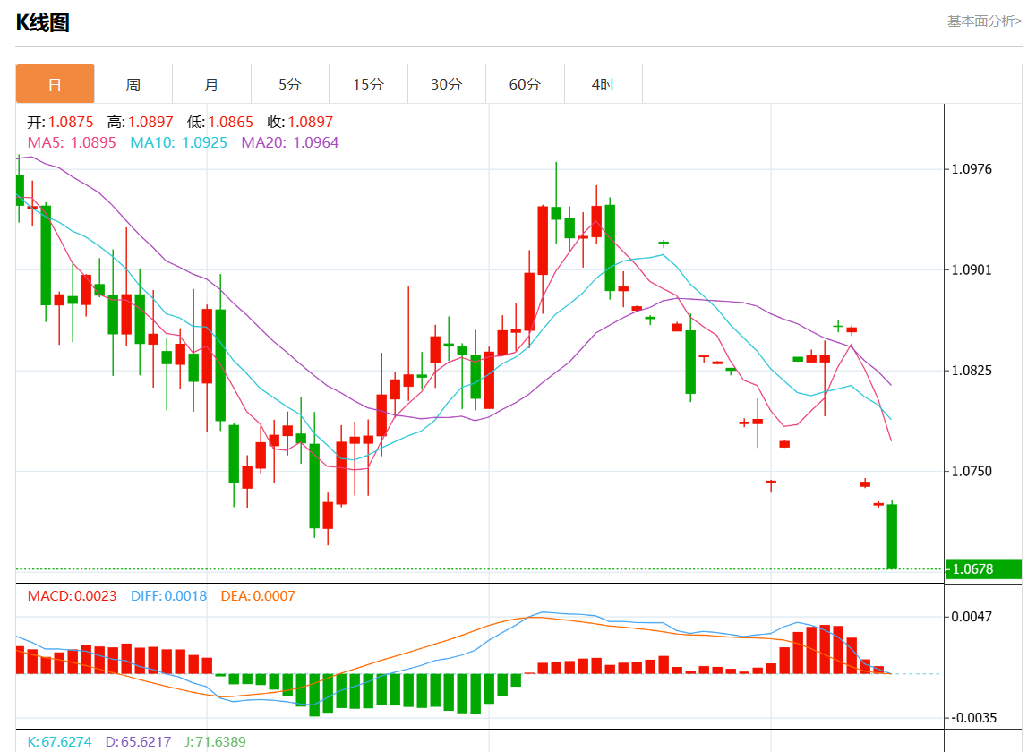 周五欧市盘中,欧元/美元最新报1.0679,日图跌0.44%. 今日分析:在1.0735之下,看跌,目标价位为1.0700,然后为1.0680。 技术点评:RI技术指标运行趋势复杂,倾向于下跌。 支撑位:1.07801.07551.0735 阻力位:1.07001.06801.0660 (亚汇网编辑: