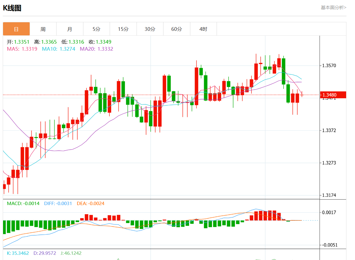 周一盘中,美元/加元报1.3486,涨幅0.04%。 今日分析:在1.3460之上,看涨,目标价位为1.3500,然后为1.3525。 技术点评:RI技术指标缺乏下降动能。 支撑位:1.35451.35251.3500 阻力位:1.34601.34401.3420 (亚汇网编辑:静香)