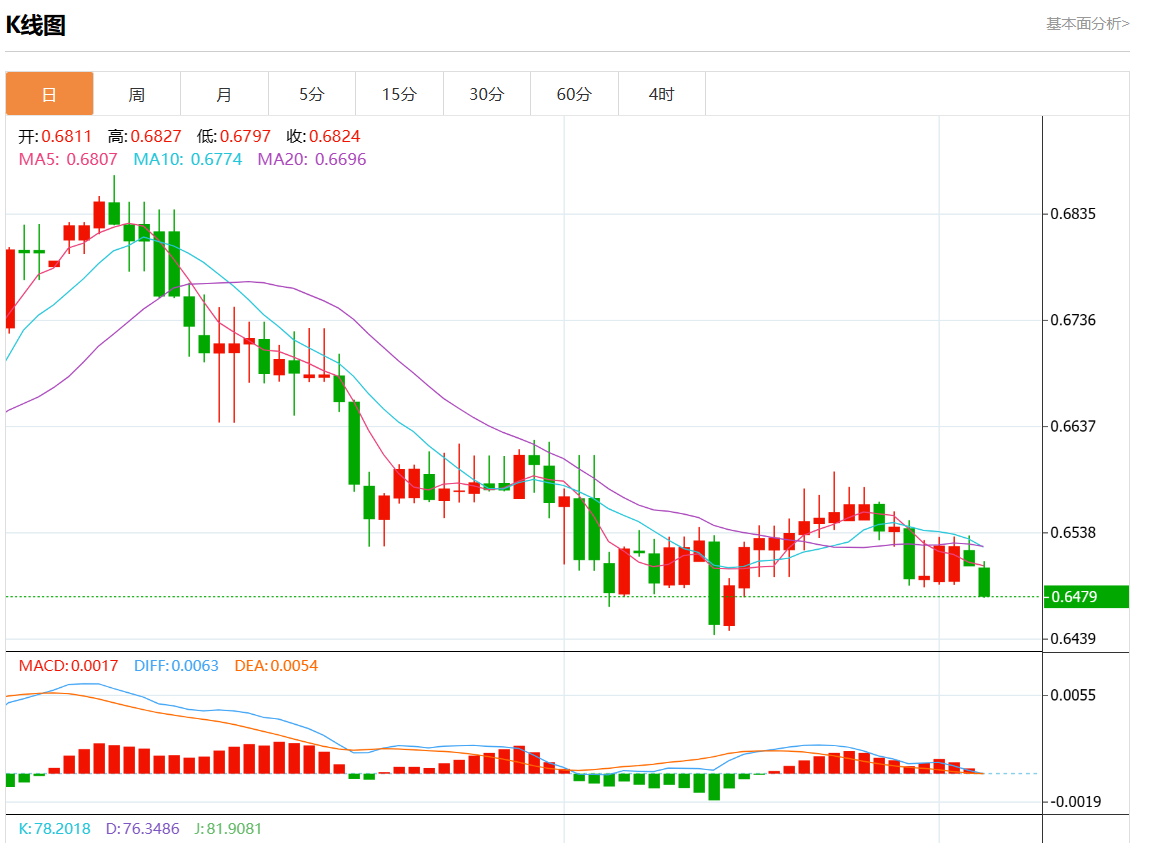 周二盘中,澳元/美元报0.6483,跌幅0.37%。 今日分析:在0.6520之下,看跌,目标价位为0.6475,然后为0.6460。 技术点评:RI技术指标向下运行。 支撑位:0.65500.65350.6520 阻力位:0.64750.64600.6440 (亚汇网编辑:静香)