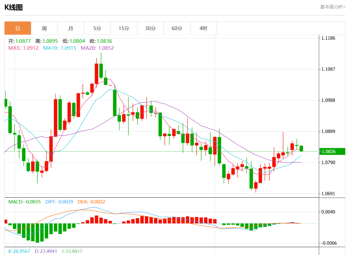 周三欧市盘中,欧元/美元最新报1.0826,日图跌0.17%. 今日分析:在1.0850之下,看跌,目标价位为1.0810,然后为1.0800。 技术点评:RI技术指标向下运行。 支撑位:1.08801.08651.0850 阻力位:1.08101.08001.0790 (亚汇网编辑:静香)