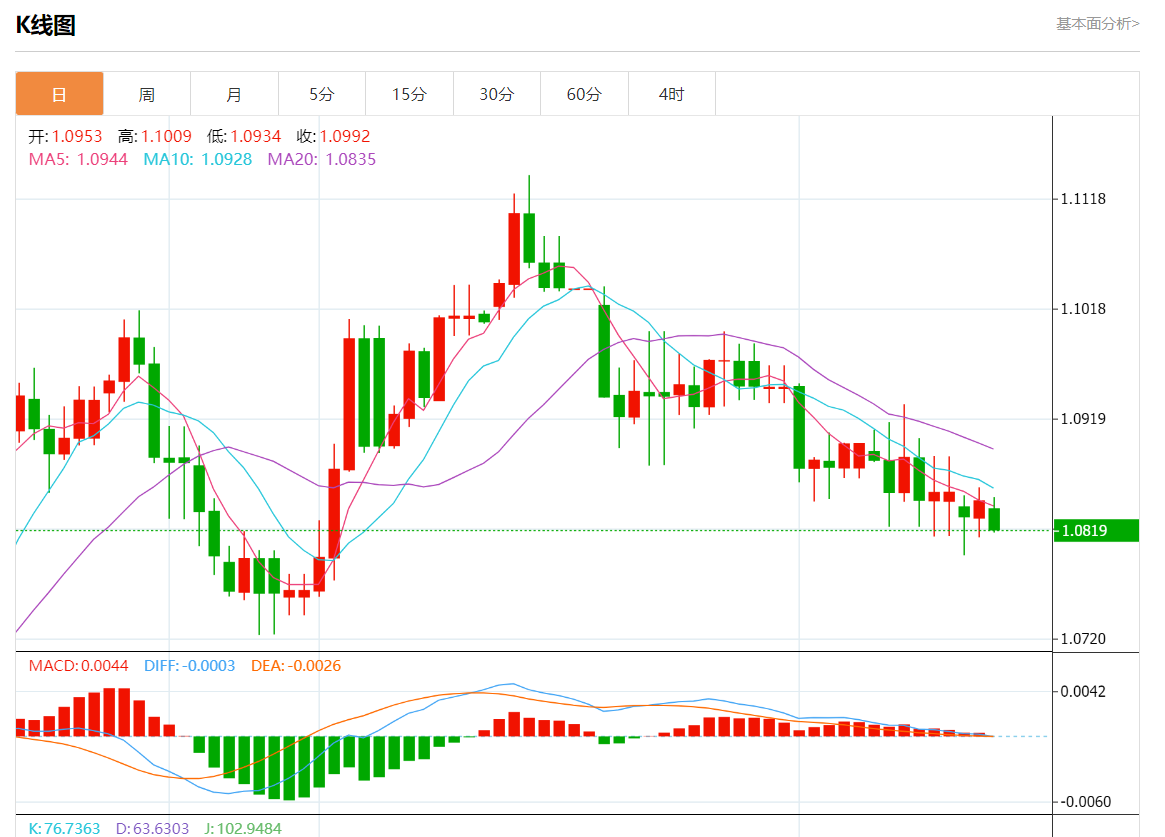 周三欧市盘中,欧元/美元最新报1.0818,日图跌0.25%. 今日分析:在1.0845下方做空,目标在1.0810和1.0795。 技术点评:RI显示下行势头。 支撑位:1.08751.08601.0845 阻力位:1.08101.07951.0775 (亚汇网编辑:静香)