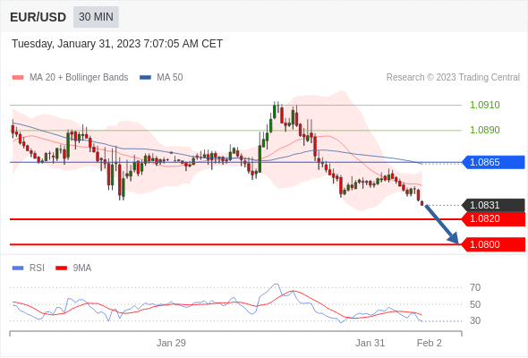 周二(1月31日)亚盘,欧元/美元最新价报1.0846,开盘价为1.0845。德国第四季度季调后GD季率初值收缩0.2%,这比预期的还要糟糕,使德国在能源价格上涨的背景下更有可能陷入衰退。 欧元/美元汇率今日分析:在1.0865之下,看跌,目标价位为1.0820,然后为1.0800。在1.0865上,看涨,目标价位定在1