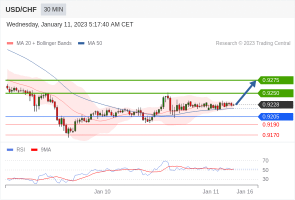 周二(1月11日)盘中,美元/瑞郎暂报0.9213,跌0.0002,跌幅0.02%。 美元/瑞郎汇率今日分析:在0.9205之上,看涨,目标价位为0.9250,然后为0.9275。在0.9205下,看空,目标价位定在0.9190,然后为0.9170。 技术点评:RI技术指标运行趋势复杂,倾向于上升。 阻力位:0.93000.