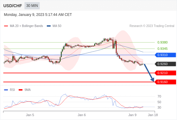 周一(1月9日)盘中,美元/瑞郎暂报0.9255,跌0.0024,跌幅0.26%。 美元/瑞郎汇率今日分析:在0.9310之下,看跌,目标价位为0.9210,然后为0.9160。在0.9310上,看涨,目标价位定在0.9345,然后为0.9380。 技术点评:RI技术指标缺乏上升动能。 阻力位:0.92100.916