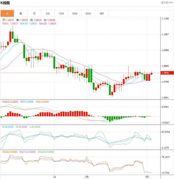 周一盘中,欧元/美元上升至0.0007点位,增幅0.06%。欧元区2月份通胀率的下降为欧洲央行在2024年下半年实现2%的通胀目标提供了良好的前景。 货币对:欧元/美元 行情分析:汇价高见1.0858,低见1.0836。上一交易日,基本面上看,上周五欧元震荡上行,日线小幅收涨,现汇价交投于1.0840附近。除空头回补和1.