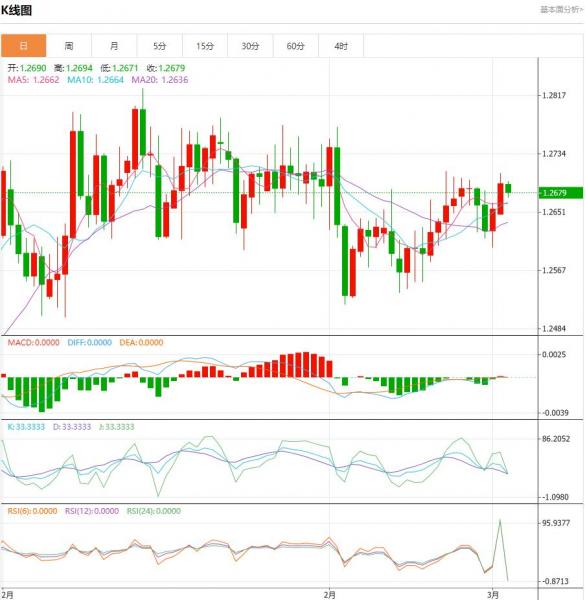 周二盘中,英镑/美元货币对为1.2679/1.2678,跌幅-0.0013。据英国泰晤士报,英国财政大臣亨特将利用他的预算,把2700万工人的国民保险进一步削减两个百分点,平均为450英镑。在决定不削减所得税后,财政大臣将把国民保险作为其春季预算的核心措施。 货币对:英镑/美元 行情分析:汇价高见1.2694,低见1.2