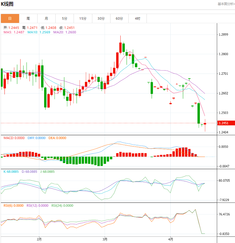 周二美市盘中,英镑兑美元上升至0.0011,增幅0.08%。根据英国国家统计局的最新数据,英国2月份失业率达到4.2%,超过了市场预期的4.0%和上个月的3.9%。包括奖金在内的平均收入增速保持在5.6%不变,而不包括奖金的收入略有下降0.1%至6.0%。 货币对:英镑/美元 行情分析:汇价高见1.2471,低见1.2408。上一