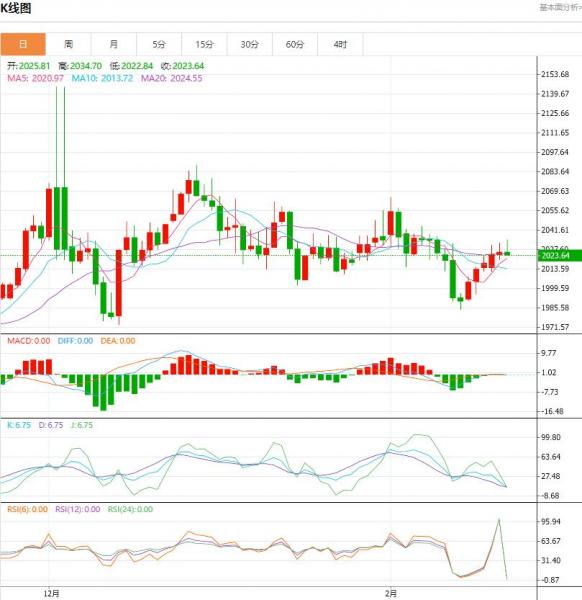 新年以来成品油裂解差稳步小幅走高,这意味着当前区间原油价格没有给需求端带来明显压力,油价整体表现较为健康。但油价节奏持续性较差考验投资者的应对,相持局面下,投资者对机会选择需要更有耐心。 今日黄金价格技术分析: 从上周五到本周行情来看,黄金价格大幅反弹至2030美元附近,已重返