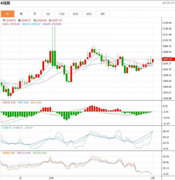 周四(2月1日),油价涨0.04%。周三油价收低逾2%,受主要原油进口国亚大国经济活动低迷,和一月份寒冷天气后生产商提高产量而造成美国原油库存意外增加的压力。 今日黄金价格技术分析: 联储周三如期维持利率不变,最新政策声明并未暗示即将降息,制定政策的联邦公开市场委员会(FOC)认为在对通