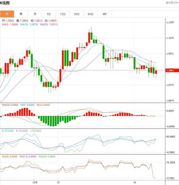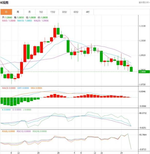 周一盘中,欧元/美元下跌至-0.0044点位,跌幅-0.40%。欧元区货币市场已完全定价欧洲央行将于2024年4月进行首次降息,降息幅度为25个基点。 货币对:欧元/美元 行情分析:汇价高见1.0850,低见1.0808。上一交易日,基本面上看,上周五欧元震荡盘整,日线小幅收涨。除空头回补对汇价构成了一定的支撑外,美