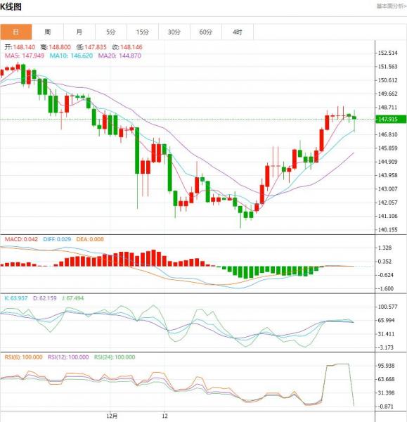 周二盘中,日元/美元下跌至-0.179点位,跌幅-0.11%。在日本央行维持超低利率不变后,美元兑日元下跌,因为人们越来越希望日本央行将很快开始收紧政策,日元走强。 货币对:日元/美元 行情分析:汇价高见148.800,低见147.675。上一交易日,基本面上看,日元作为全球公认的融资成本最低的避险货