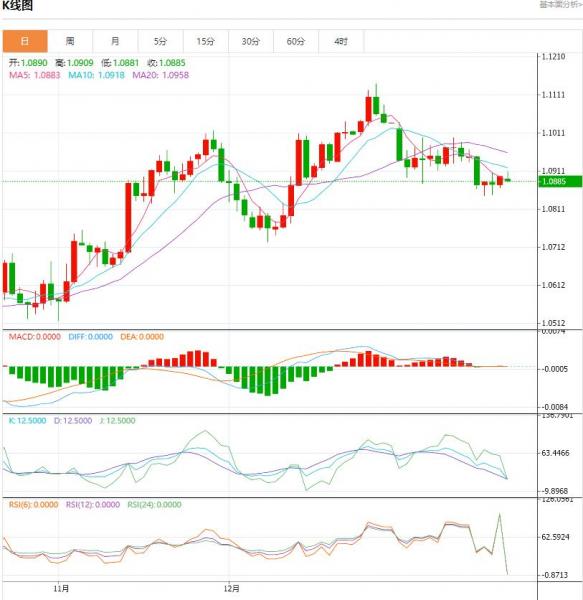 周一盘中,欧元/美元下跌至-0.0012点位,跌幅0-0.11%。欧元/美元看跌,14天动能仍为负值;最终跌势有可能再次测试1.0794费波纳奇技术位。 货币对:欧元/美元 行情分析:汇价高见1.0909,低见1.0881。上一交易日,基本面上看,上周五欧元震荡上行,日线小幅收涨,除空头回补对汇价构成了一定的支撑