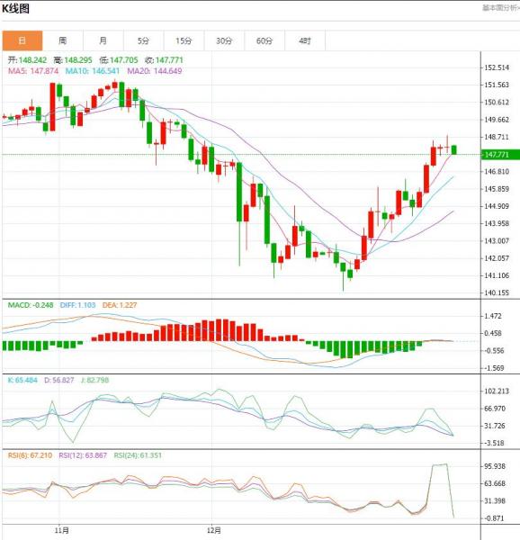 周一盘中,日元/美元下跌至-0.391点位,跌幅-0.29%。日元避险货币的地位正在动遥日本因贸易赤字及长期的低利率政策,日元处在历史最低位,与同样被视作安全货币的瑞郎相比,日元的地位正不断下降。 货币对:日元/美元 行情分析:汇价高见148.800,低见147.675。上一交易日,基本面上看,美国银行本月进行