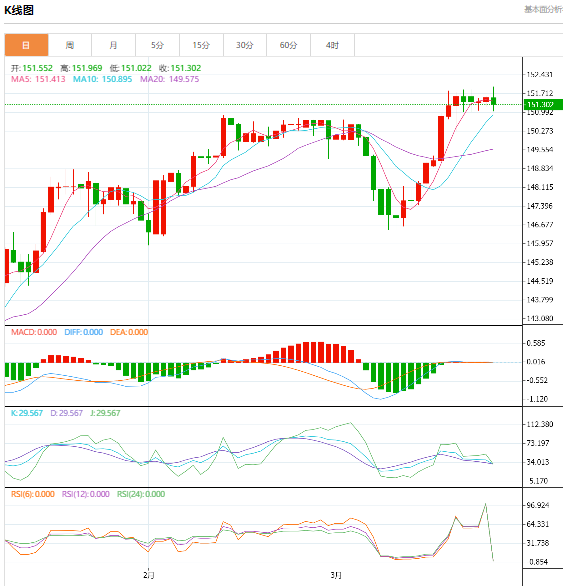 周一美市盘中,美元/日元上升至0.122,增幅0.08%。日本央行前官员、知名的日本主要通胀专家之一TutouWataa说,日本央行在再次加息之前可能会慢慢来,最早可能在10月份加息。 货币对:美元/日元 行情分析:汇价高见151.479,低见151.220。上一交易日,汇价收于151.328。基本面上看,周五(3月29日)