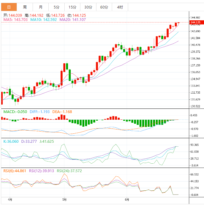 周三盘中,美元兑日元上涨至144.13,涨幅0.05%。 基本面上,美元/日元多头在周三早些时候缺乏上涨动能,该货币对徘徊于144附近,目前小幅下跌。汇价最新表现似乎受到关注,因为价格依然位于一周的看跌上升楔形内,同时触及2022年11月以来最高水平。 技术面上,美元兑日元提供了新的积极交易,以测试144.00的障碍,