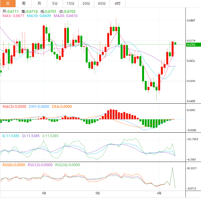 澳元兑美元多头在一个月以来的最高水平稍作喘息,此前澳元兑美元上涨了一周以来的最大涨幅,周五亚洲交易时段,澳元兑美元在0.6715-20区间徘徊。在此过程中,澳元对在澳大利亚的主要客户中国发布通胀数据之前表现出谨慎的情绪,同时也对澳大利亚储备银行(RA)和美联储(Fd)之间的货币政策分歧的最新前景表示欢迎。 澳
