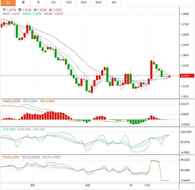 周一亚洲交易时段,英镑兑美元连续第二天延续涨势,在1.2230附近走高。英国周五公布的国内生产总值(GD)初值好于预期,加上美元走弱,英镑兑美元可能得到了上行支撑。 英国第三季度GD下降至0.0%,而市场预期为收缩0.1%。按年计算,GD保持不变,增长0.6%,低于预期的0.5%。这些数据可能会改善市场对英镑(G)的情绪