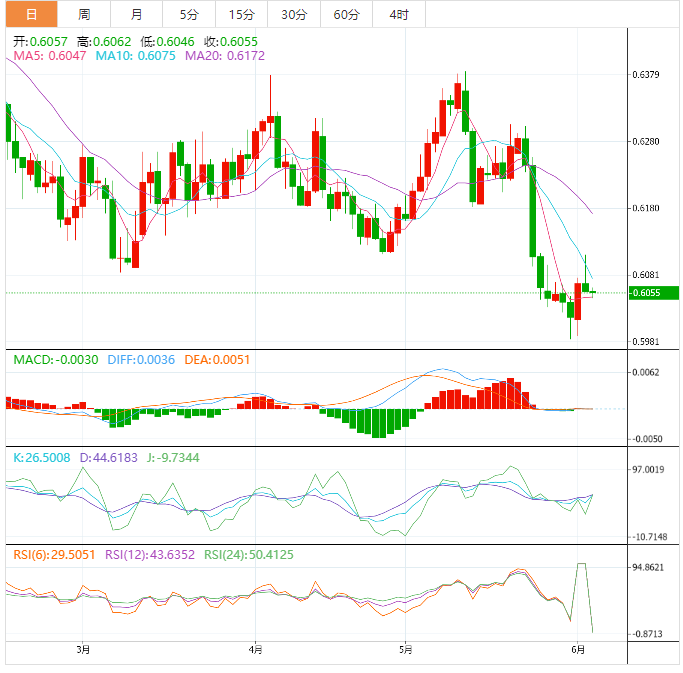 纽元兑美元从七个月以来的最低水平反弹,延续了前一日的跌势,周一亚洲市场早盘,纽元兑美元在0.6060附近守住了较低的基矗在这种情况下,纽元对表现出该报价在未能越过关键支撑位-阻力位线和10日移动均线的情况下,无力捍卫上周从多日低点反弹的修正反弹。 除了10日移动均线和之前的支撑线分别延伸至2022年11月的0.60