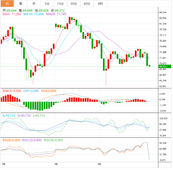 原油价格走势综述 周四亚洲时段,美原油交投于68.28美元/桶附近;油价周三延续跌势,下挫近3%,盘中创近四周新低至67.02美元/桶,受美元走强和亚洲疲软数据引发的需求担忧所拖累,且美国3月原油产量升至三年来最高增加油价下行压力。 美联储加息忧虑增加,需求担忧升温拖累油价,美国原油和成品油库存增加,且美国