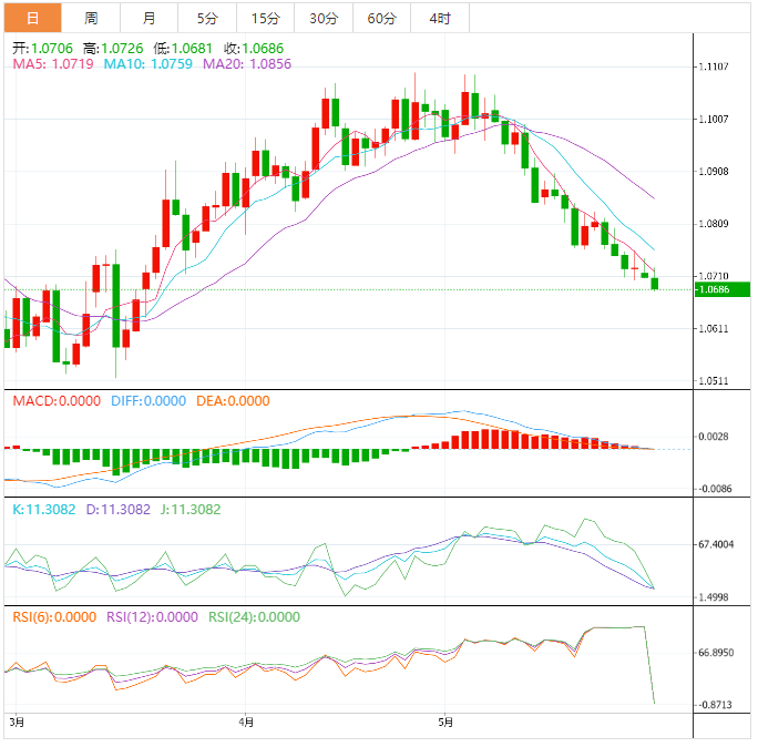 欧元兑美元在周二欧洲盘前仍处于1.0700附近的10周低点。 欧元/美元汇率走势基本面解读 由于美联储态度强硬,以及对欧洲央行(C)进一步加息能力的怀疑,欧元兑美元连续六天处于守势。对主要货币对施加下行压力的,还有市场情绪的最新转变。在6月5日美国违约日期到来之前,美国参众两院就债务上限延长法案进行投票