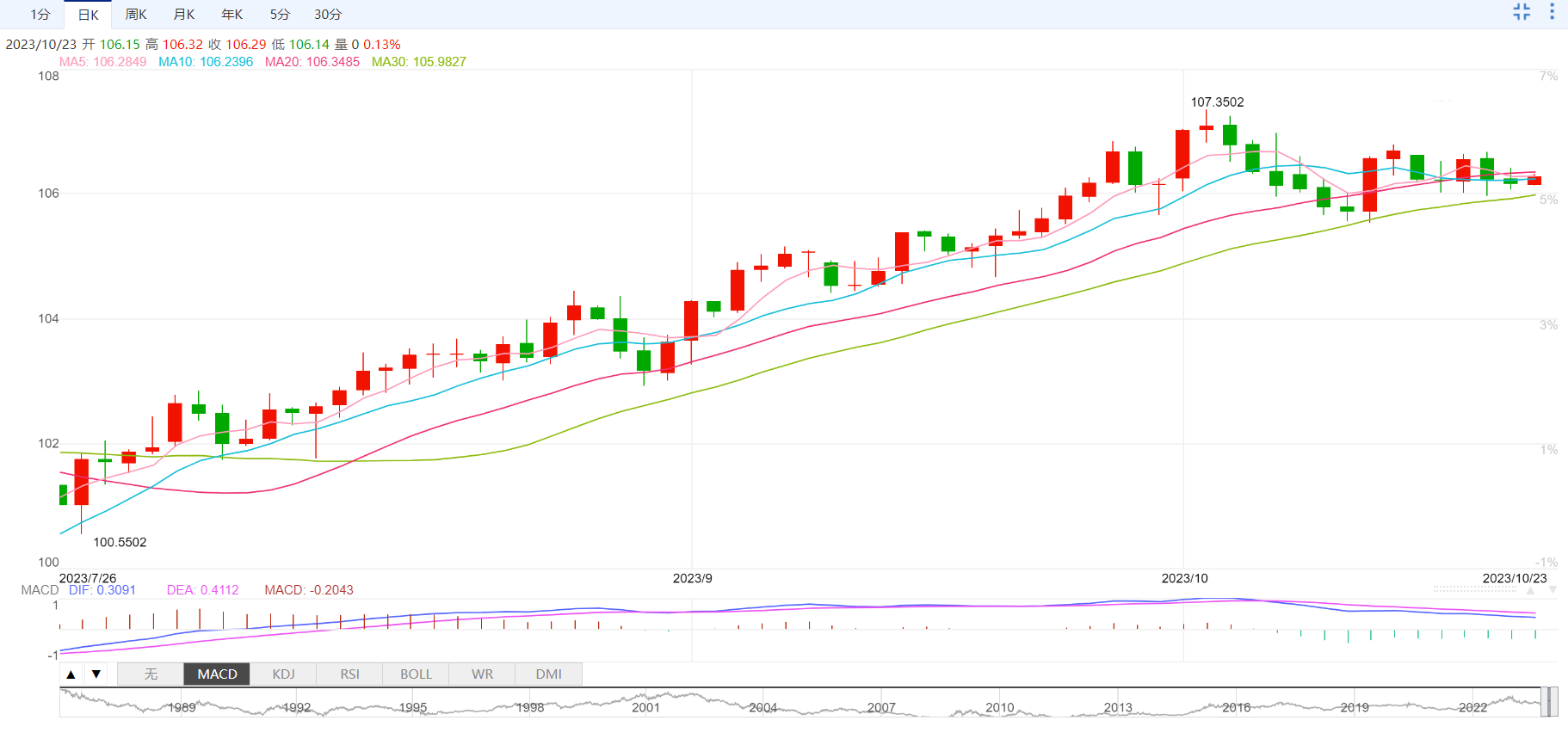 周一盘中,美元指数而言,美元设法恢复平衡,并在本周初重新回到了106.30区域。 美元指数基本面综述 美元指数始终在106.00的低位徘徊,目前风险偏好趋势交替。 与此同时,市场参与者继续关注中东的地缘政治局势,以寻找近期走势。在货币政策预期方面,投资者预计美联储将在11月1日的会议上维持利率不变,而12月