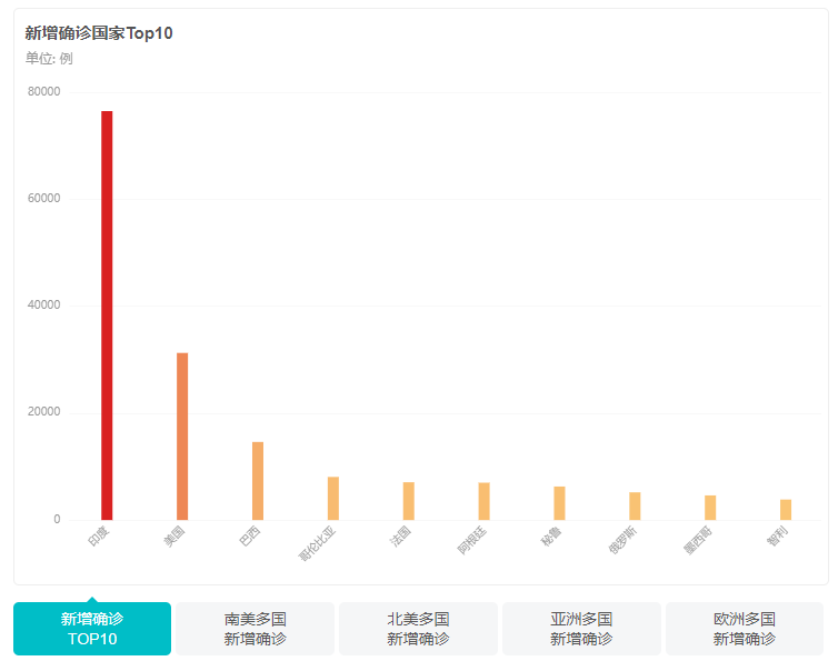 据印度卫生部9月8日公布的最新数据,印度新冠肺炎确诊病例升至4280422例。在过去24小时内,印度新增确诊病例75809例,连续41天日增超5万例。新增死亡病例1133例,累计死亡72775例。根据worldotr最新数据,印度已经超过巴西,成为全球新冠肺炎确诊病例数量第二高的国家。