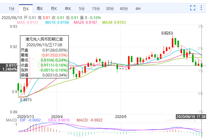 香港金管局向市场沽出22.09亿港元,因港元汇价触发强方兑换保证。 截止06-1017:40:06,港元人民币短线下跌,现报0.9112。