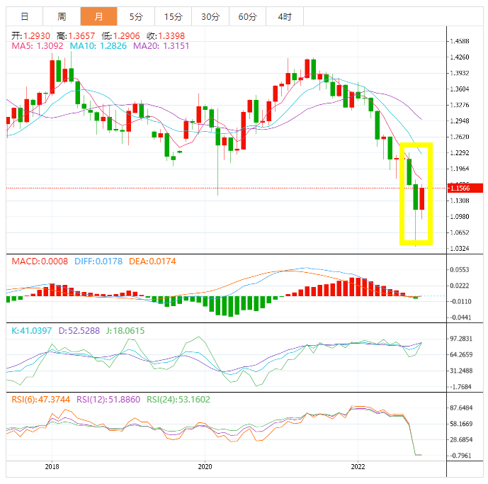 10月英镑/美元走势回顾 英镑兑美元从10月初的开盘价1.1163,目前汇价1.1572(截止目前),10月已经上涨409点,10月26日触及最高点1.1638。 英国新首相苏纳克(Rihiuak)为英镑兑美元注入了新的活力,英镑兑美元连续第三周上涨。在短暂的盘整之后,英镑从1.0300的数十年低点恢复了反弹势头。英镑兑美元的持续