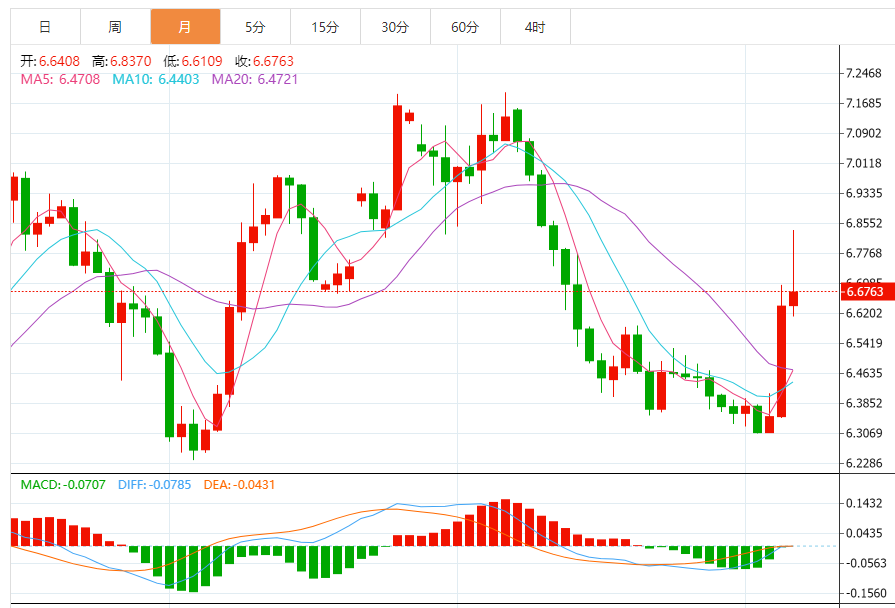 6月美元/离岸人民币继续走高,截止发稿,美元/离岸人民币月涨幅0.55%。因美元强势,美元/离岸人民币汇率连续3个月走高。中国疫情、经济疲软以及美联储和中国人民银行(OC)之间货币政策出现背离等因素,使美元/离岸人民币维持在高水平。眼下即将迈入6月份,中国疫情缓和,美元/离岸人民币是否会继续走高? 市场基本面