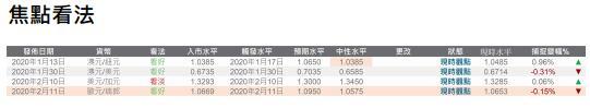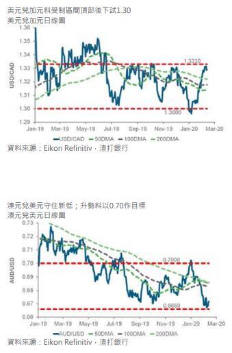 澳元兑美元可能显示初步迹象即将在未来数天或数周出现反弹,因为在周一创下10年以来的新低点后未有延续跌势。技术走势和市场仓位均支持至少出现短期反弹。 最近的降雨应付了大部分持续多时的山火,而国内的基础设施支出或很快出现。 预期中国在广泛的病毒检疫限制得到缓解后将会刺激经济也可能支持澳元。 由于支撑位在0.6650附近仍然守稳,我们预计初步将会反弹至0.6930,亦有可能延伸至0.70以上。