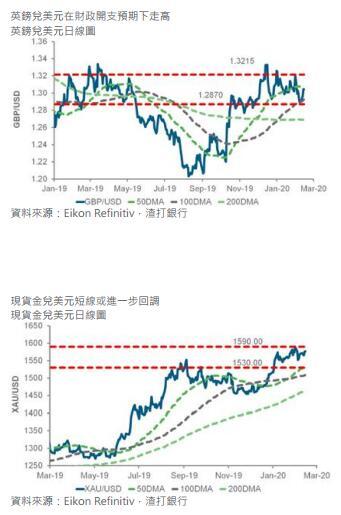 随着约翰逊总理改组内阁,并以相对上较少经验但亲约翰逊的RishiSunak来取代贾维德(财政部长),英镑表现上升。市场将此解读为3月11日的预算案中可能会更具扩张性,因总理试图在与欧盟乃至全球各国展开棘手的贸易谈判期间刺激经济。这亦意味英伦银行减息的可能性有所下降,即将卸任行长卡尼特别提及即将到来的预算刺激措施是该行维持利率不变的原因。一旦突破1.3215的话,英镑兑美元将有机会上升至1.35。