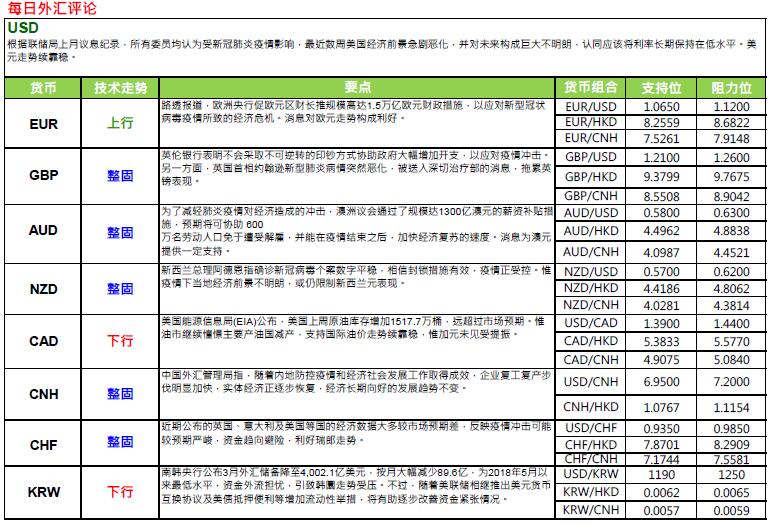 =607; 美国联储局公开上月中紧急议息的会议纪录显示,局内委员均认为,受新冠病毒疫情影响,使美国经济前景急剧恶化,并对未来构成巨大不明朗性。故局方未来须动用所有工具应对,至于利率方面,局方将在较长时期内锚定于底部水平。明显,于新冠病毒疫情前景未下,美联议息只能尽力稳定市场信心,暂难给予市场更多启示。