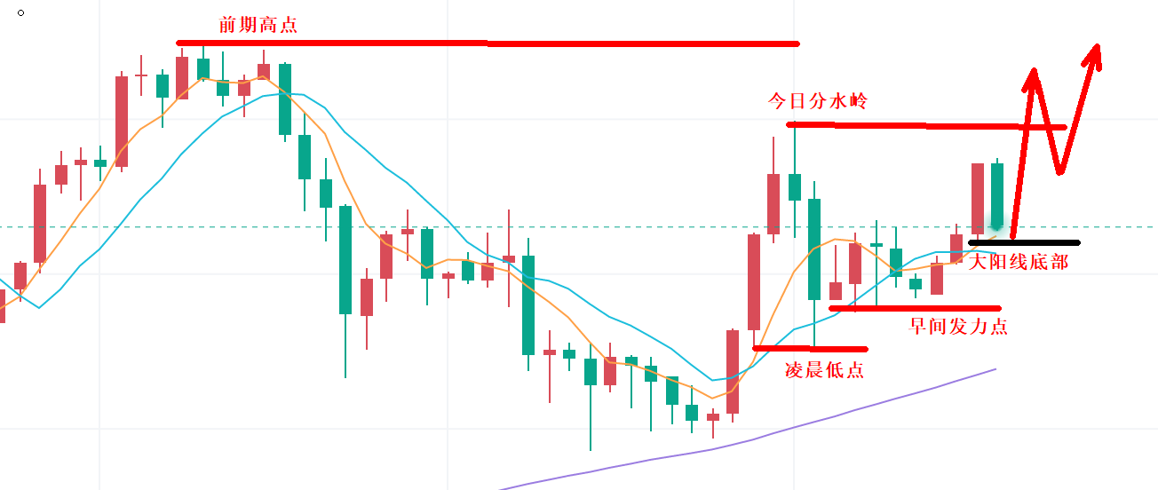 昨日虽然是大阳,但一个区间,日内走了三个来回,反反复复,美盘也只是到了日内高点一线。