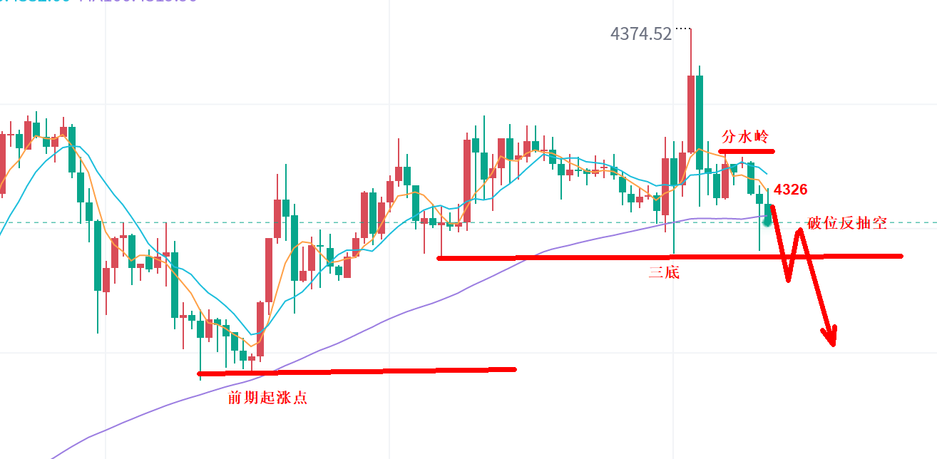 4,早间下跌,分水岭早间高点,也是横盘回撤位,在4336.