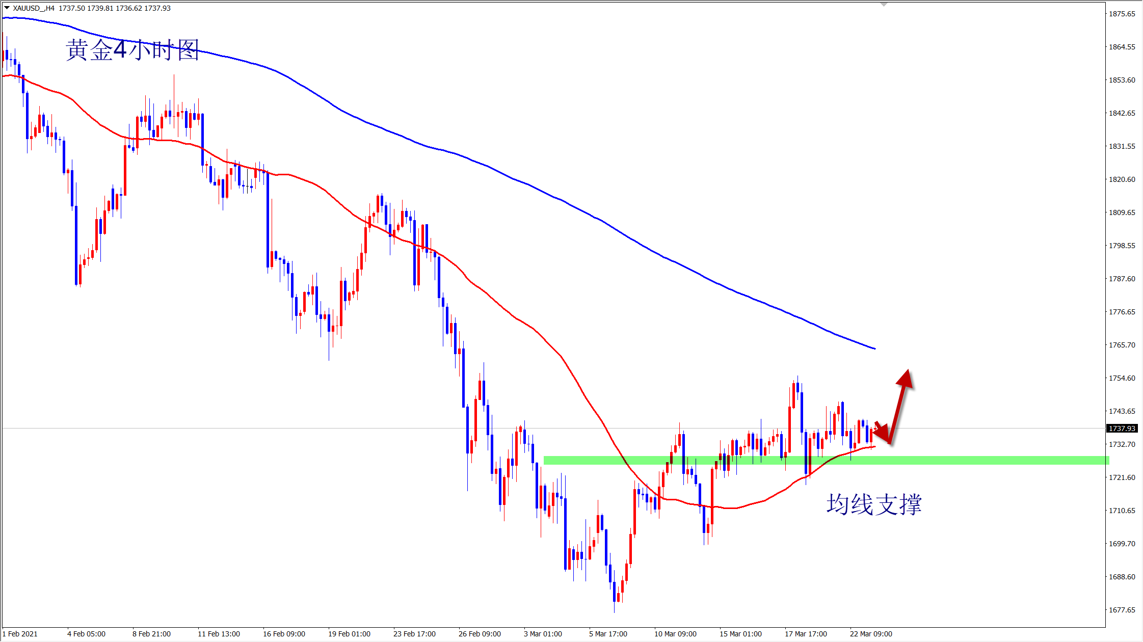 黄金现在仍然是区间震荡走势,所以在1730一线获得支撑后必然反弹,在1740附近遇阻后欧必然回调,但整体上还是反弹上涨没有改变,不过是行情需震荡蓄势后重新上涨!下方最关键的支撑就是4小时均线支撑,已经连续三次回踩此位置获得支撑,只要不破此支撑,黄金回落后依然继续低多!