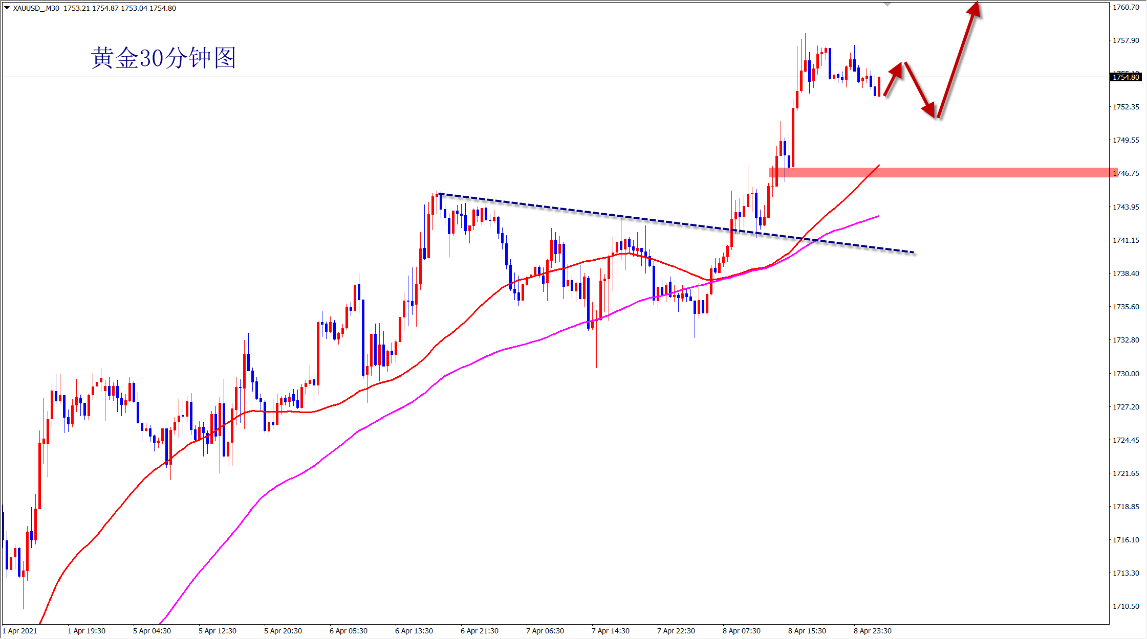 黄金1752多,止损1744,目标1760-1770;