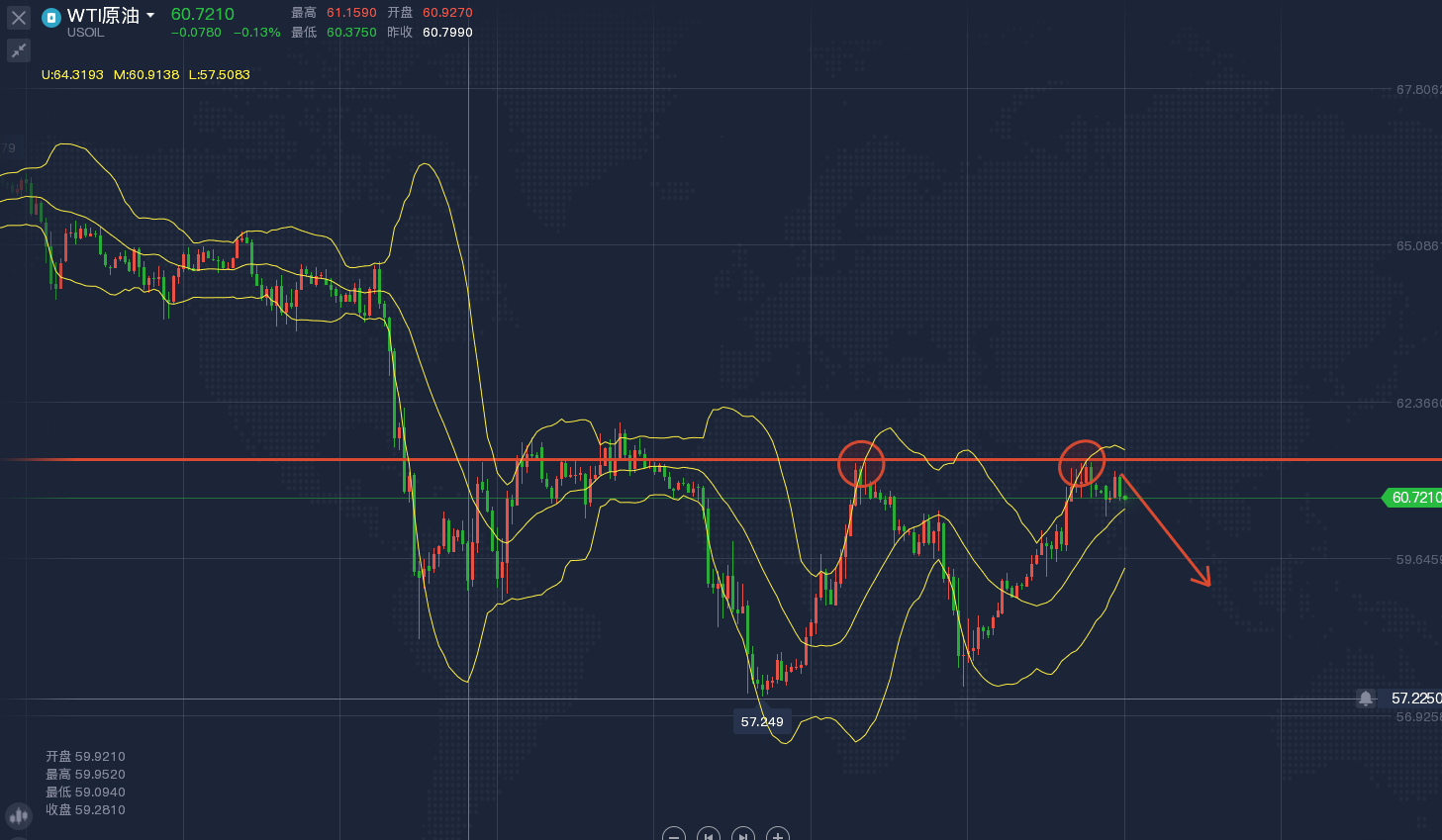 原油:反弹61.3附近做空,止损62,目标59.2,破位持有。